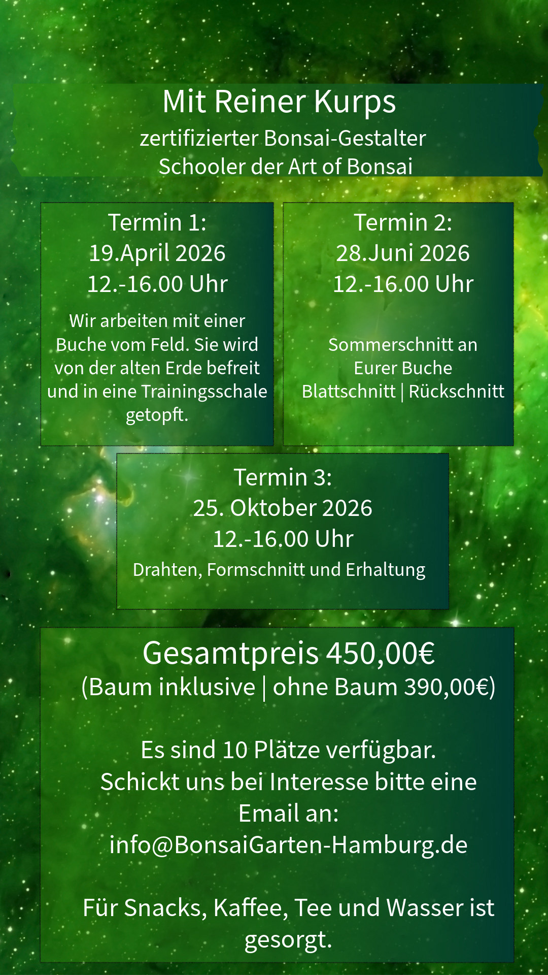 Noch alle Plätze verfügbar für den Level-übergreifenden Kurs mit Reiner Kurps !